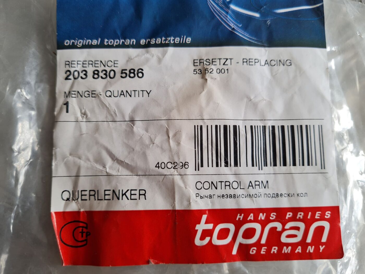 Främre upphängningsarm för TOPRAN 203830586 90495103 LH
