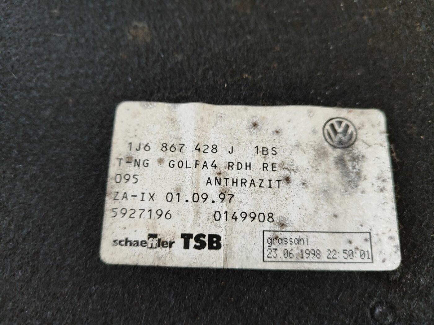 Bagageutrymmets sidoklädsel för VW GOLF IV 1999 1J6867428J 0149908