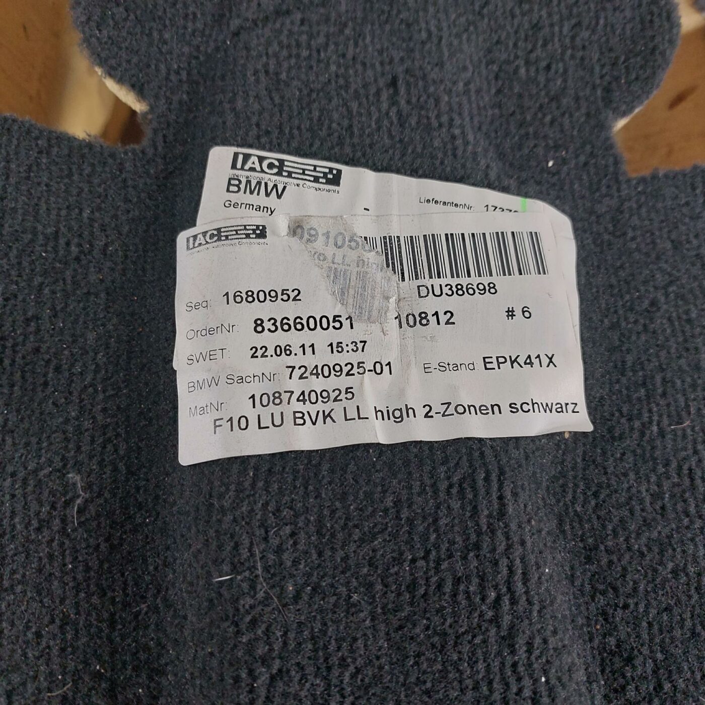 Matta i salongen för BMW 520D F11 2011 TOURING 724092501 1680952 DU38698